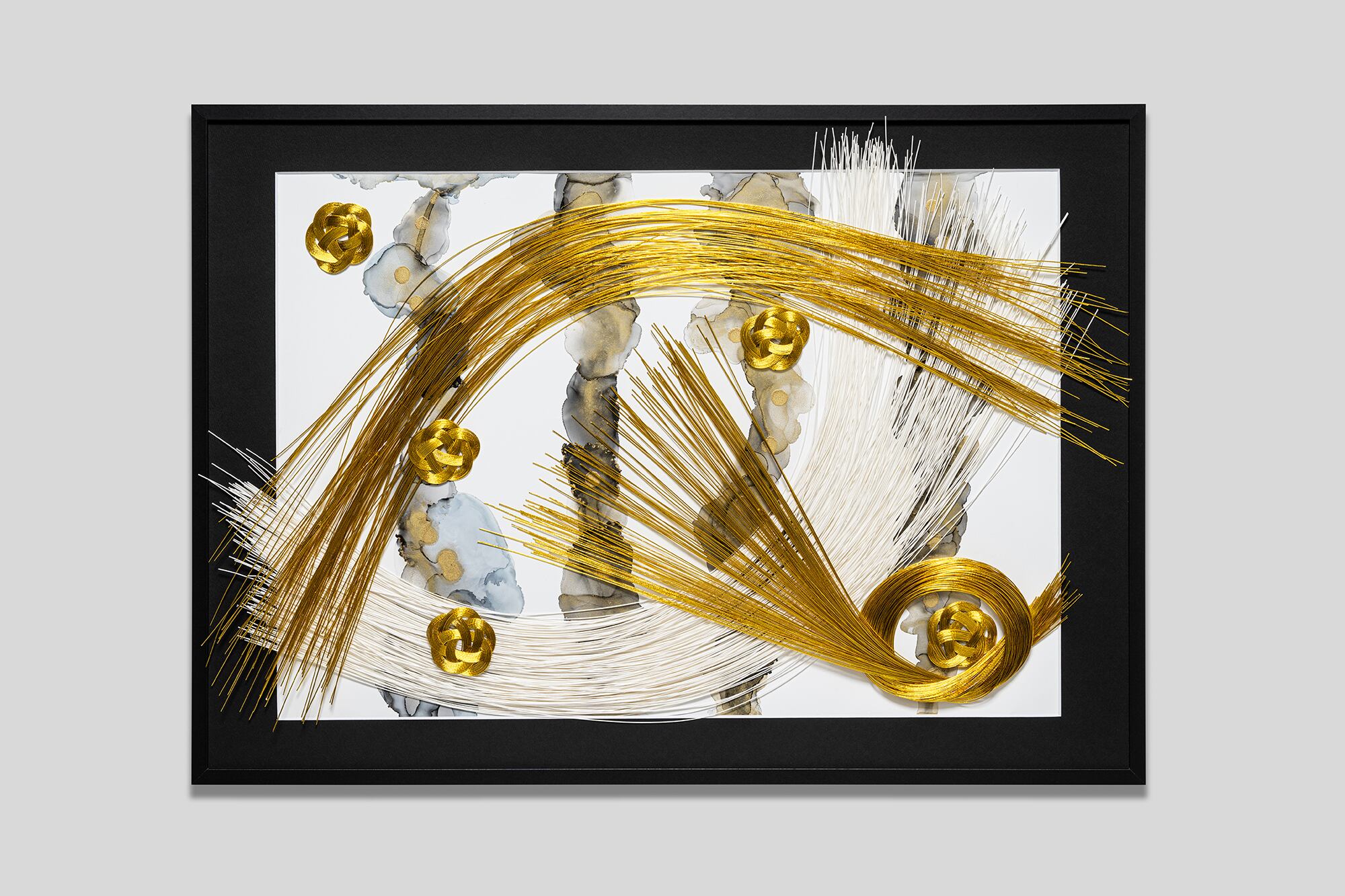 奥行きのあるボックス型により、水引が織りなす繊細かつダイナミックな立体美をそのままお楽しみいただけます。シンプルで高級感のある黒枠が作品全体を引き立てます。