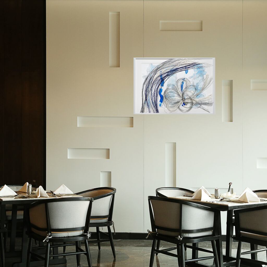 【色彩が持つ波動】 清らかな青と銀の色彩は、清らかさ、心の透明感、そして無限の可能性を象徴します。観る人の心を深く浄化し、穏やかで前向きなエネルギーを与えます。このアートは、タイトルにある通り、内側の光(Inner Radiance)を花開かせることをテーマにしており、新たな未来への希望と輝きをもたらします。